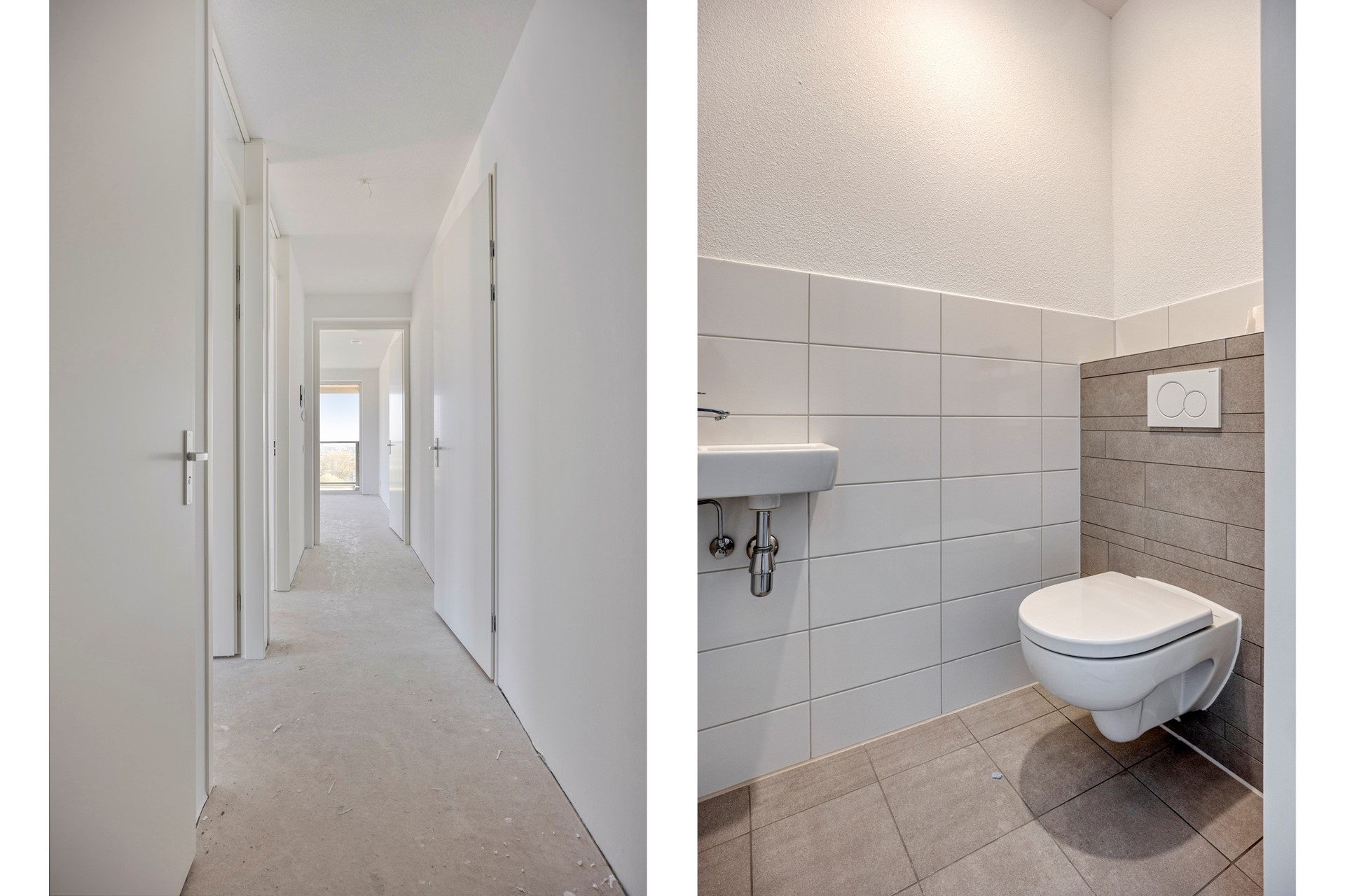 Via fraaie hal met lift of trap naar 11e verdieping. Entree, hal, meterkast, separaat toilet met fontein, inpandige berging voorzien van wasmachine aansluiting.
