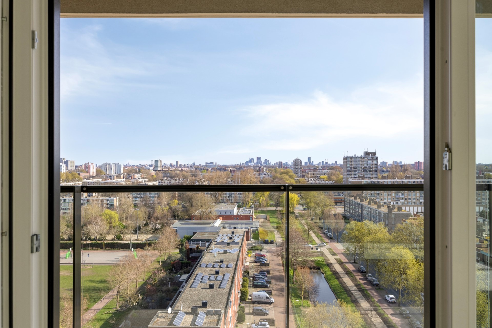Het gehele appartement is voorzien van kunststof kozijnen met dubbel glas.